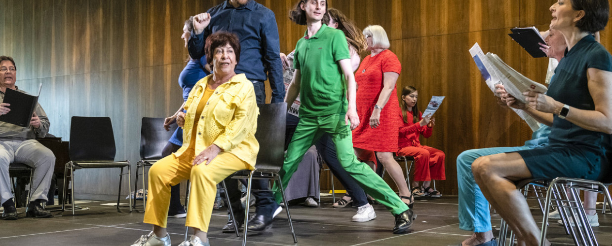 Die Chorproben werden mit Musik-, Tanz- und Theaterworkshops erweitert. Außerdem lernt der Generationenchor unser Opernhaus kennen, u. a. mit Führungen hinter die Kulissen und Probenbesuchen. In jeder Spielzeit bringt der Generationenchor ein szenisches Konzert zur Aufführung.